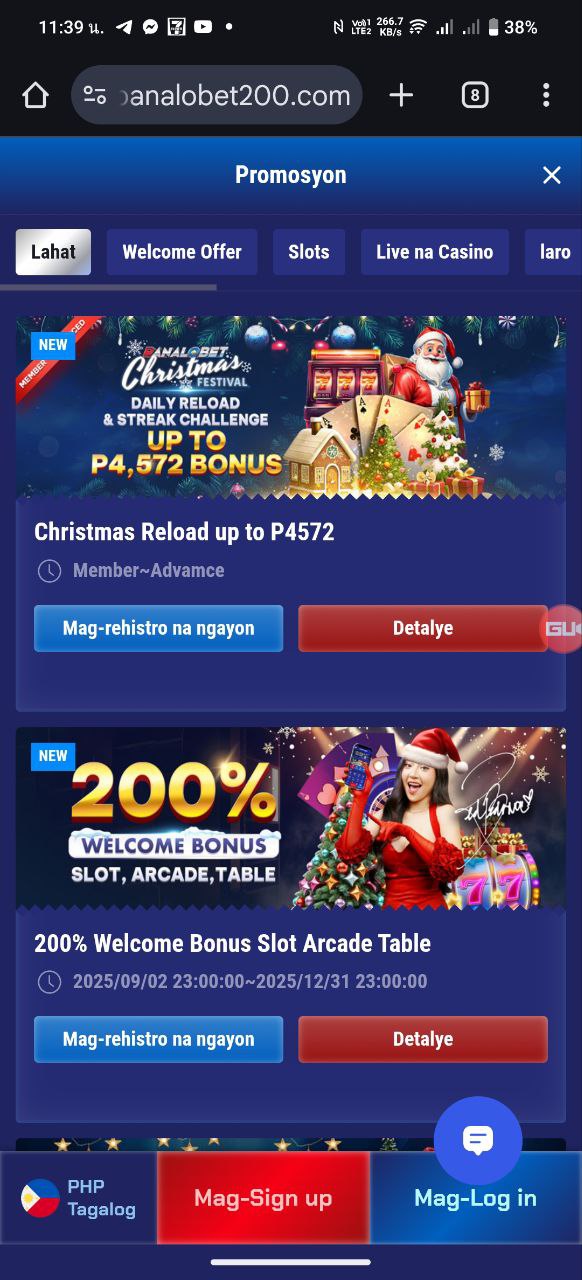 | Types of Games Available | Slots, Live Casino, Fishing, Sport, Sabong, Bingo, Arcade game ,Table game |